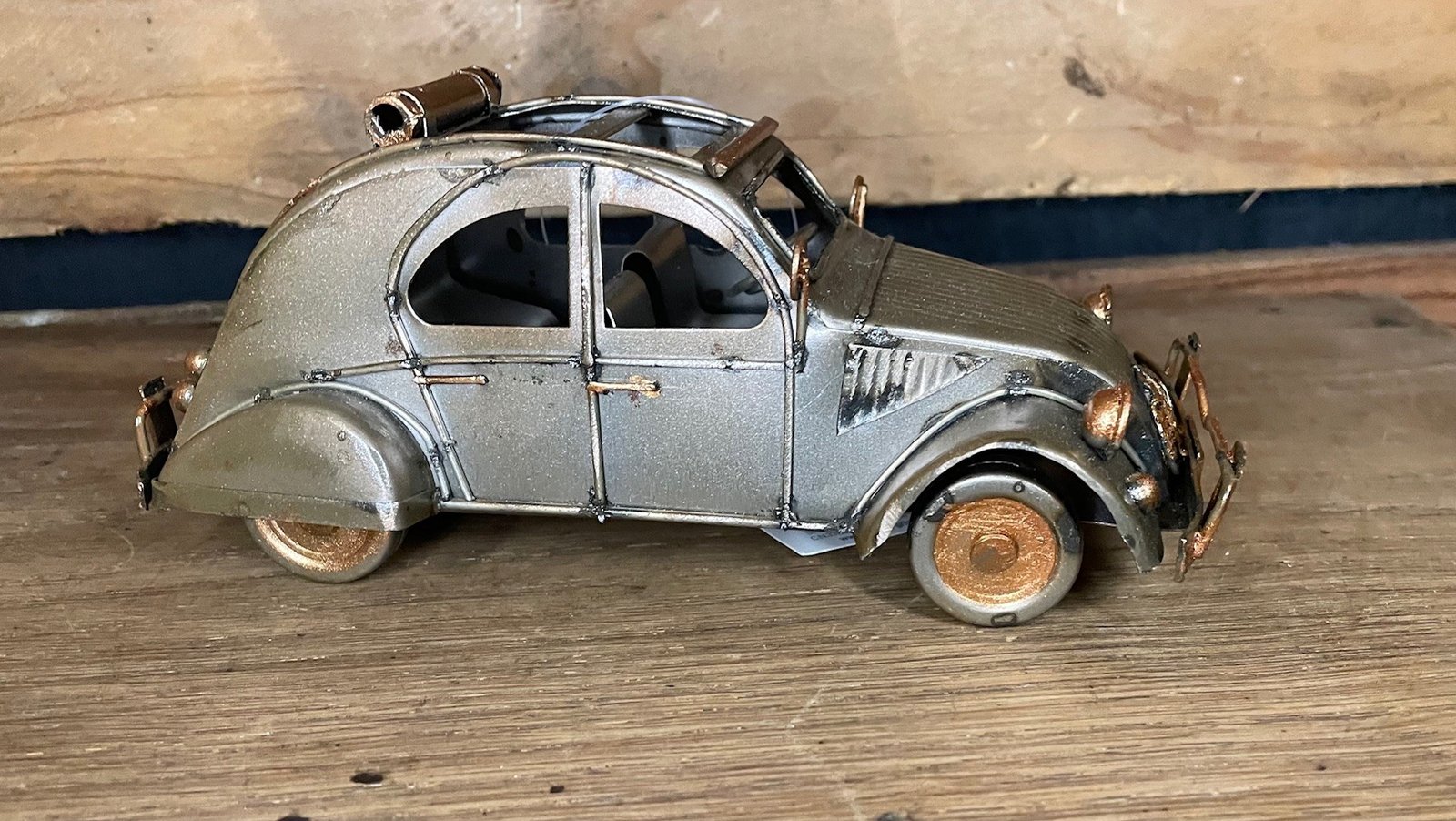 Laissez-vous séduire par cette 2CV décapotable tout en acier, une pièce déco pleine de caractère qui rend hommage à la mythique “Deudeuche”. Avec son look vintage, sa carrosserie métallique et son style emblématique, elle apporte instantanément une touche rétro et chaleureuse à votre intérieur.