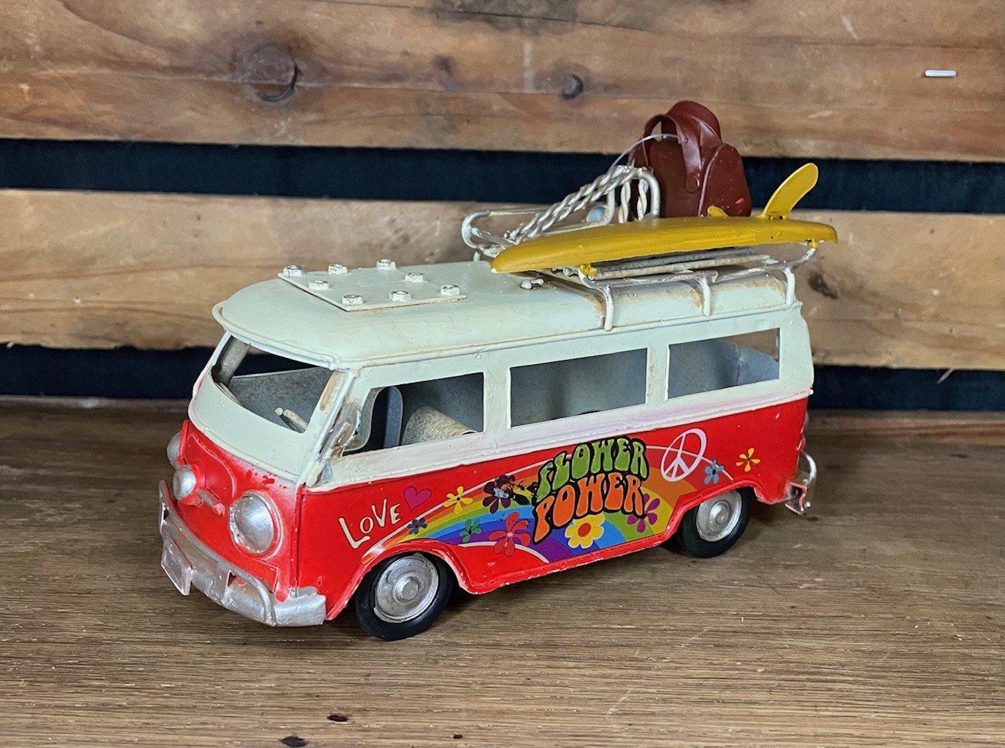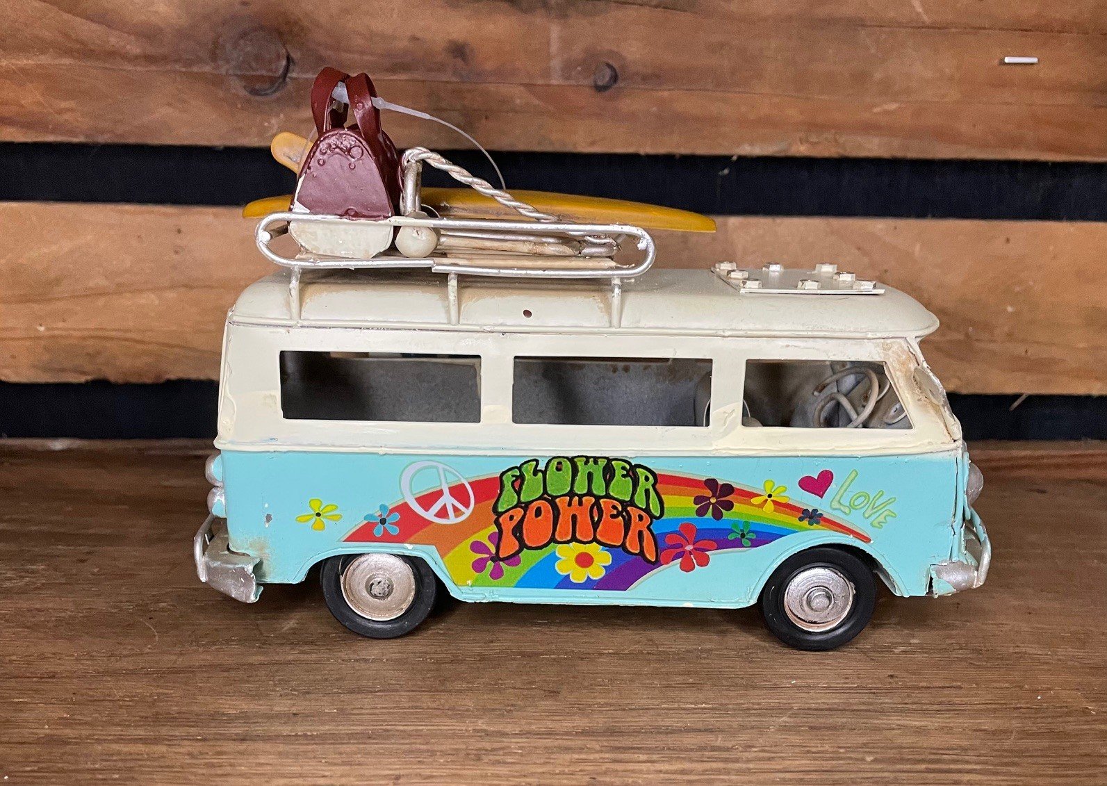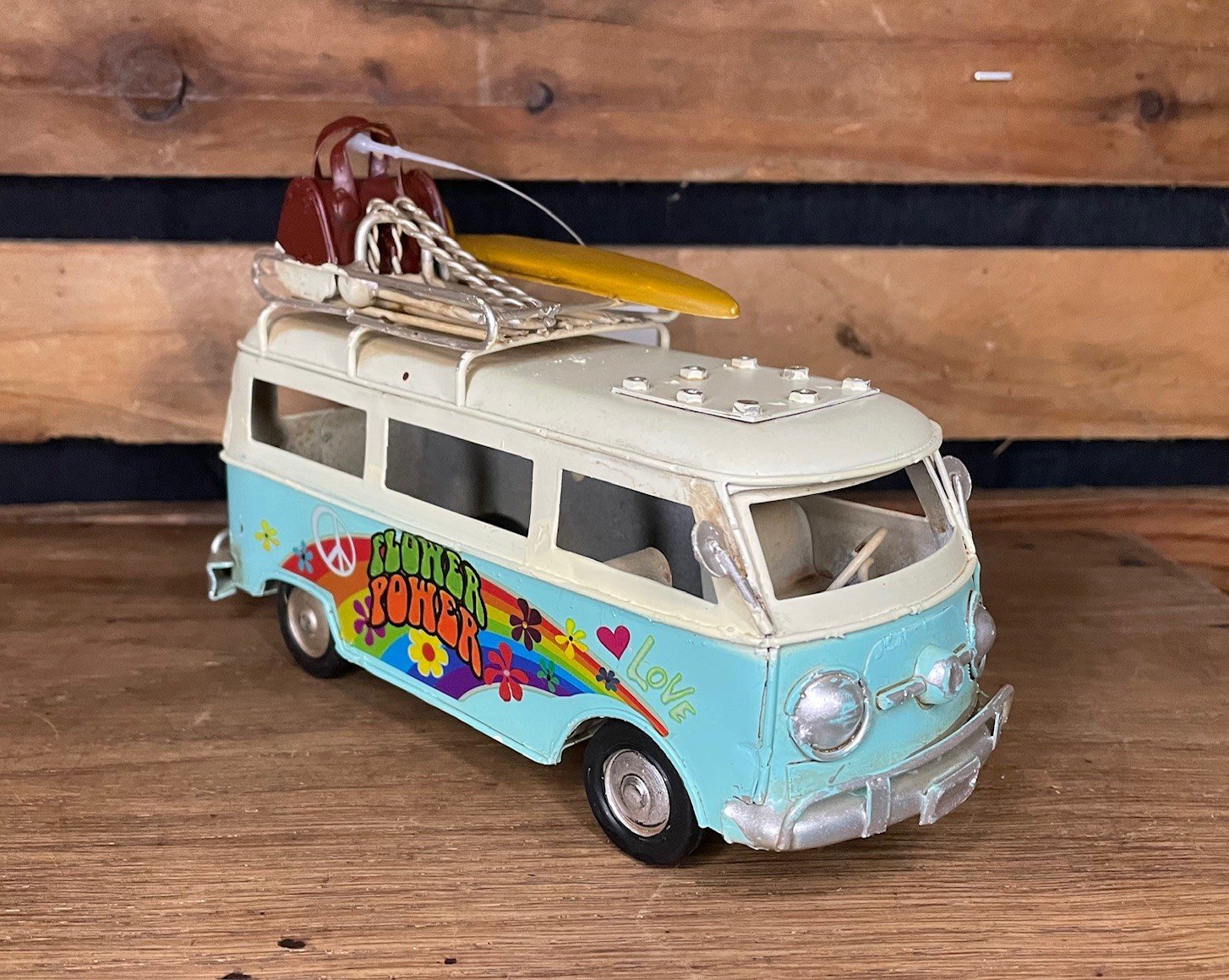 Idéal pour une étagère, un bureau ou une vitrine, ce petit combi décoratif évoque les voyages, la liberté et la culture hippie.