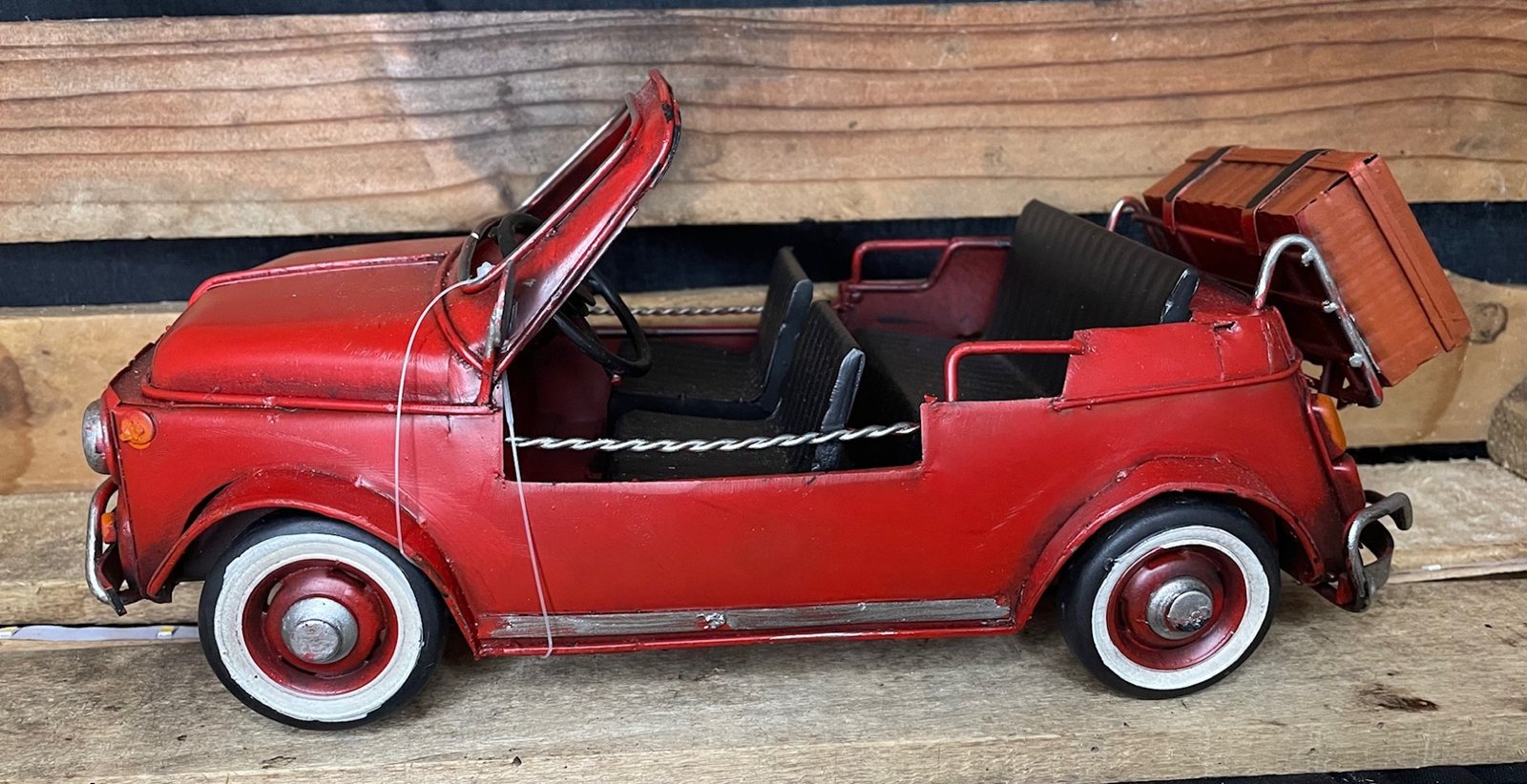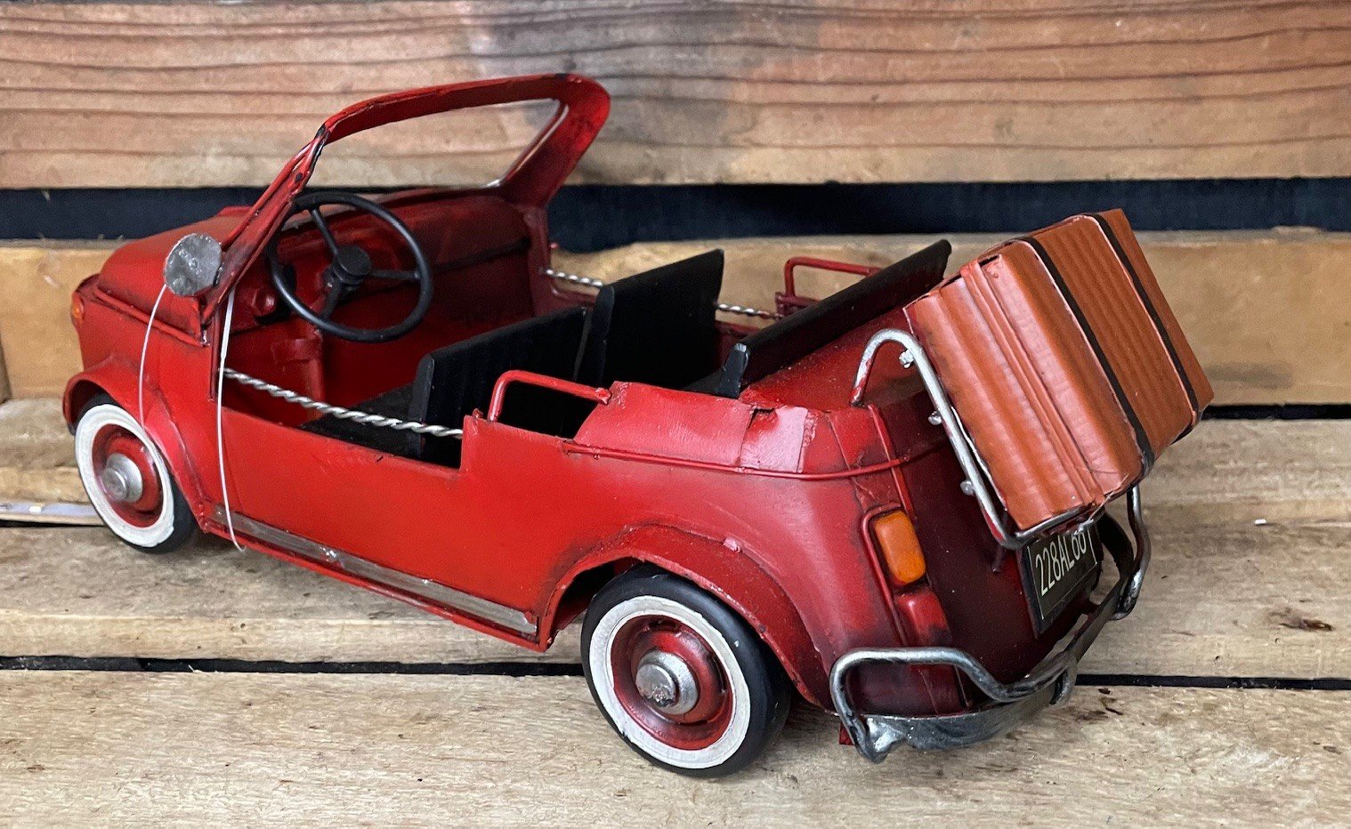 Fiat 500 plage cabriolet bagages métal déco vintage
