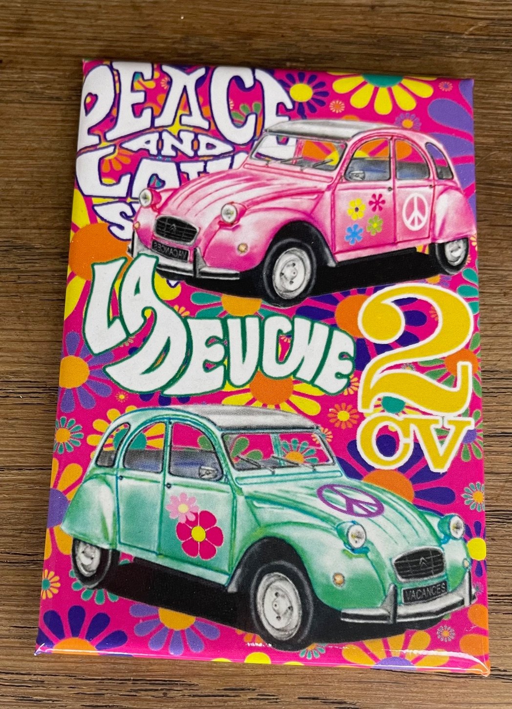 Magnet Citroën 2cv Peace and Love déco automobile vintage