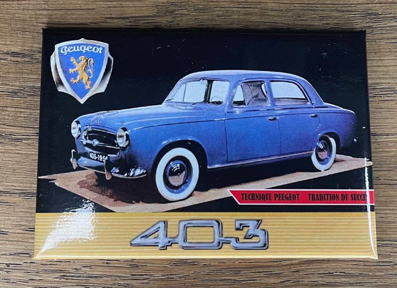 Ce magnet Peugeot 403 met en lumière l’une des berlines françaises les plus emblématiques des années 50‑60, chère au cœur des passionnés.
