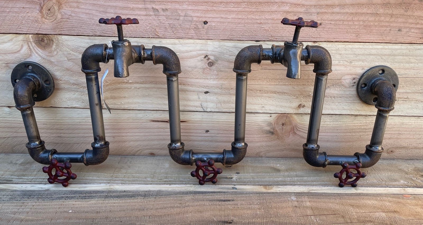 Fixé au mur, il apporte instantanément une ambiance industrielle et rétro, façon loft ou ancienne manufacture. Ses vannes servent de crochets solides pour accrocher manteaux, sacs ou accessoires, tout en donnant à l’espace une touche authentique et légèrement nostalgique.