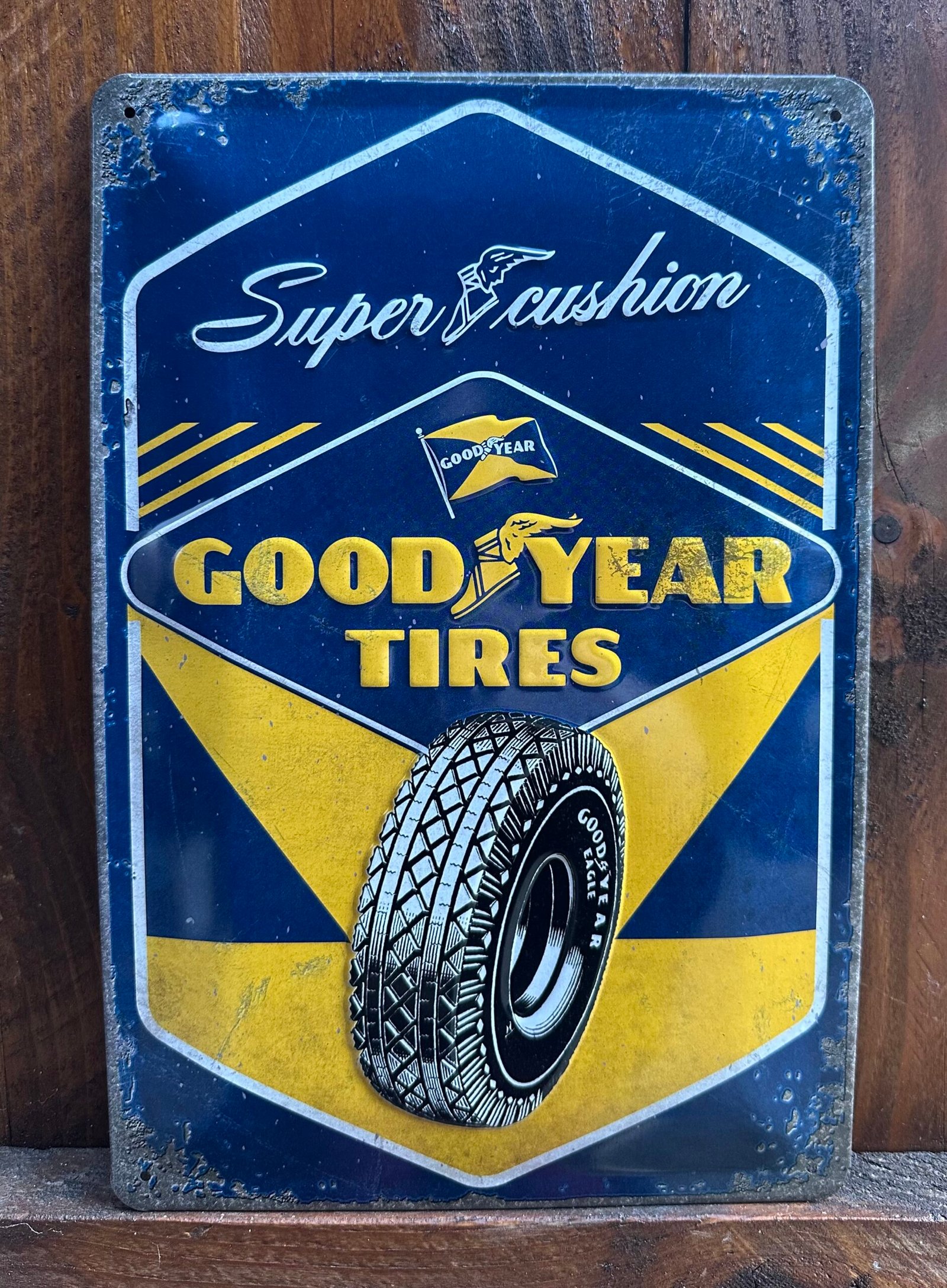 Plaque métal déco bombée relief Googyear