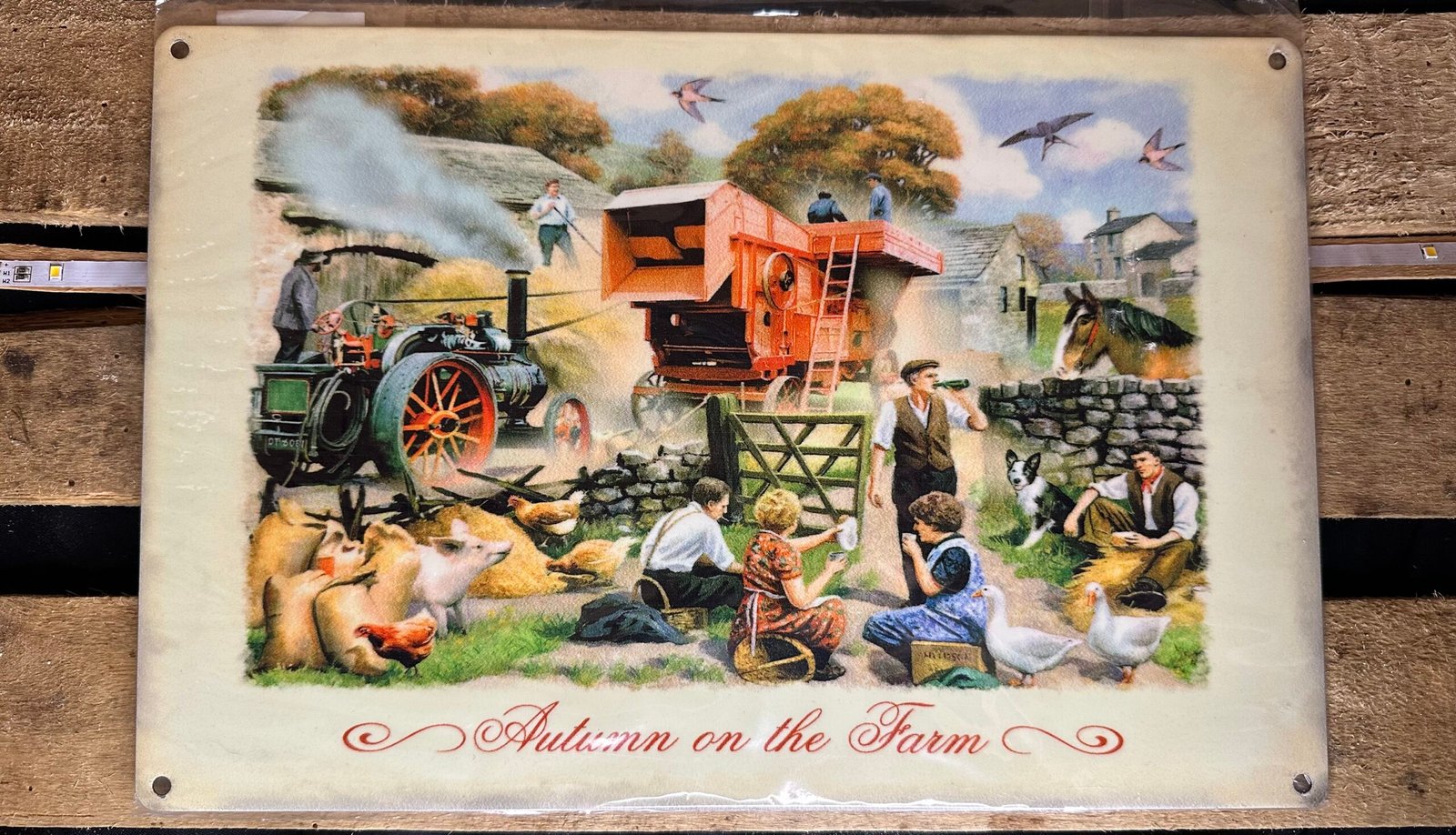 Plaque métal déco ferme automne