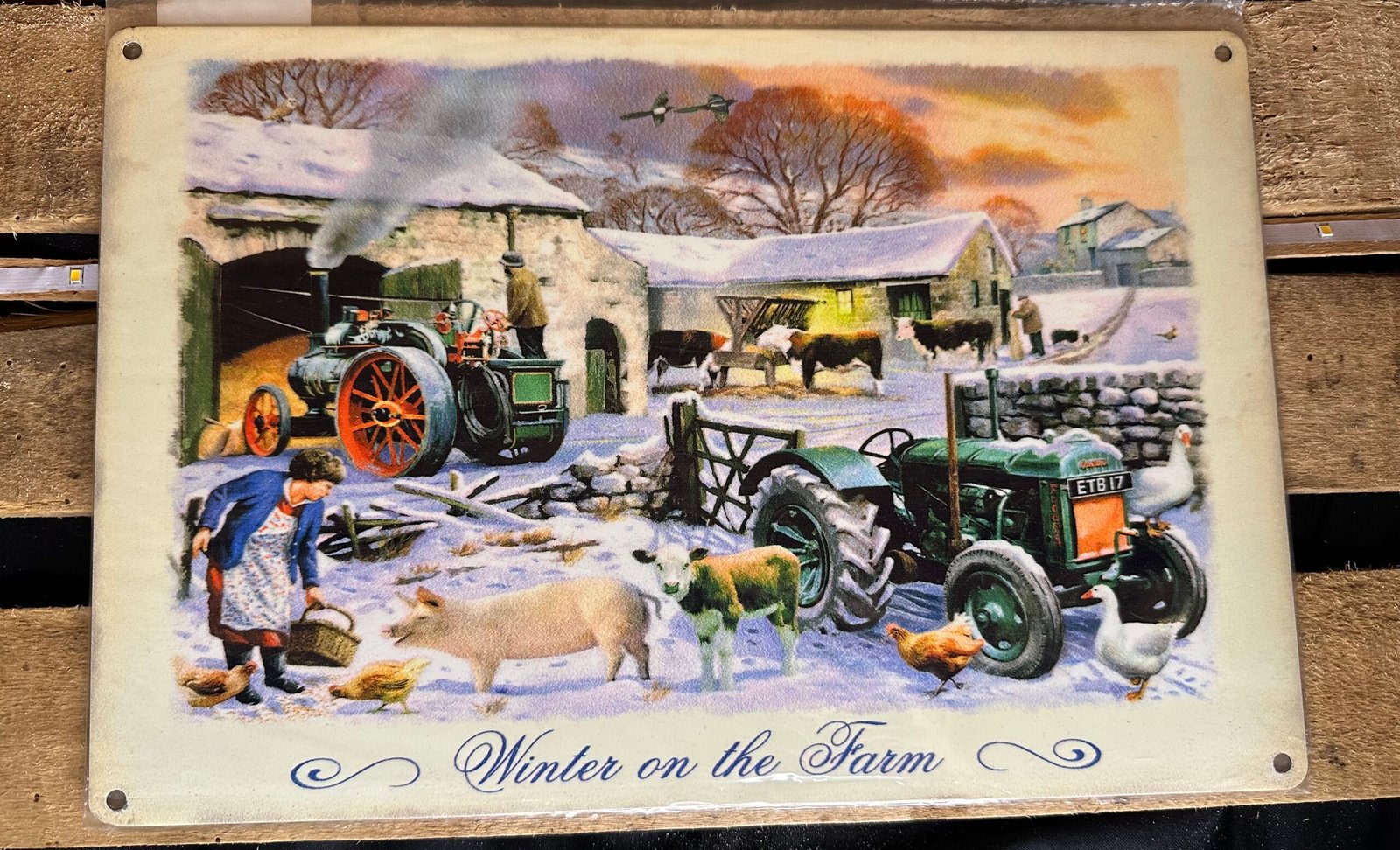 Plaque métal déco ferme hiver